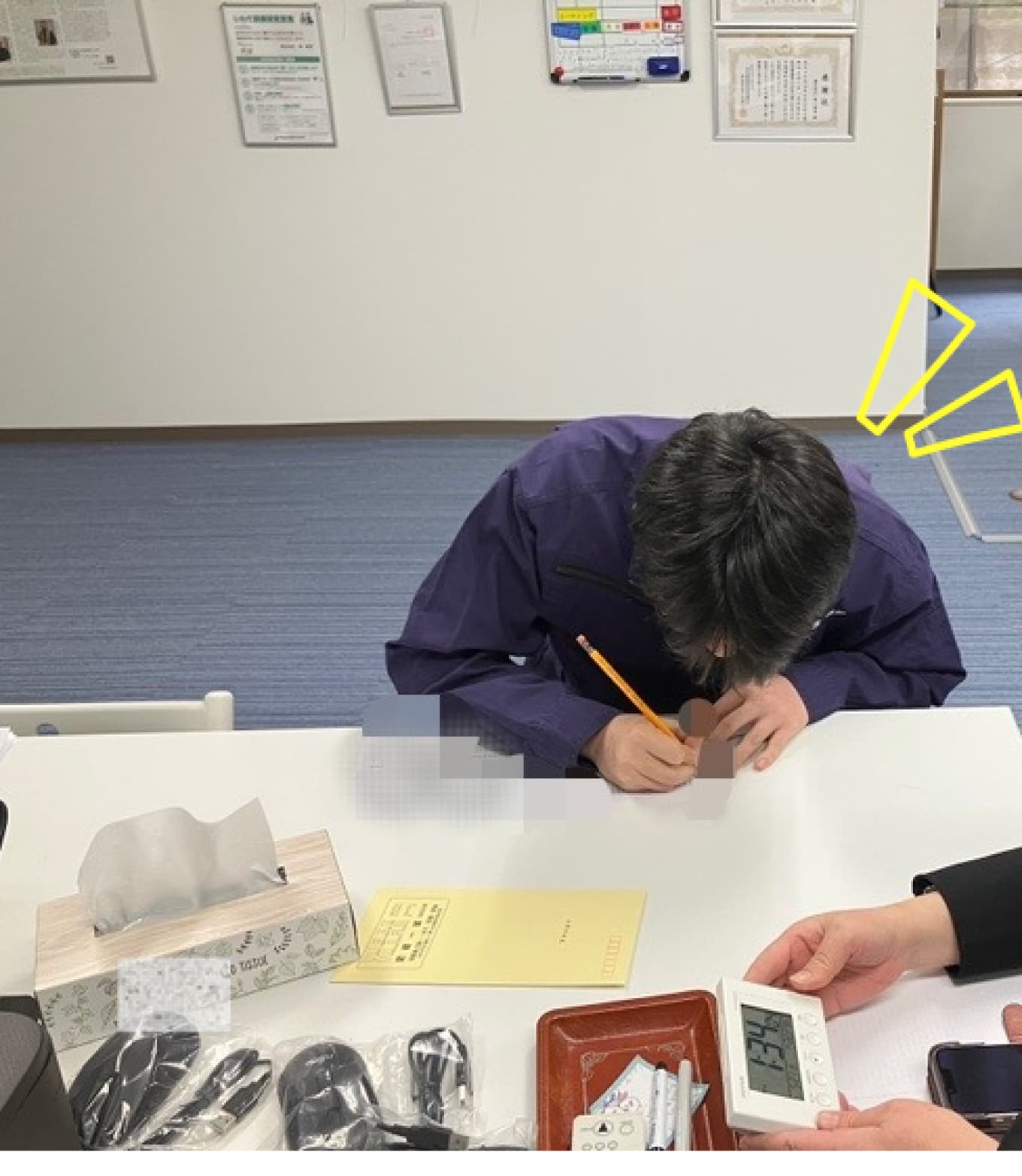 写真は2024年入社のOくんが本番を想定してクレペリンの練習をしている様子です。