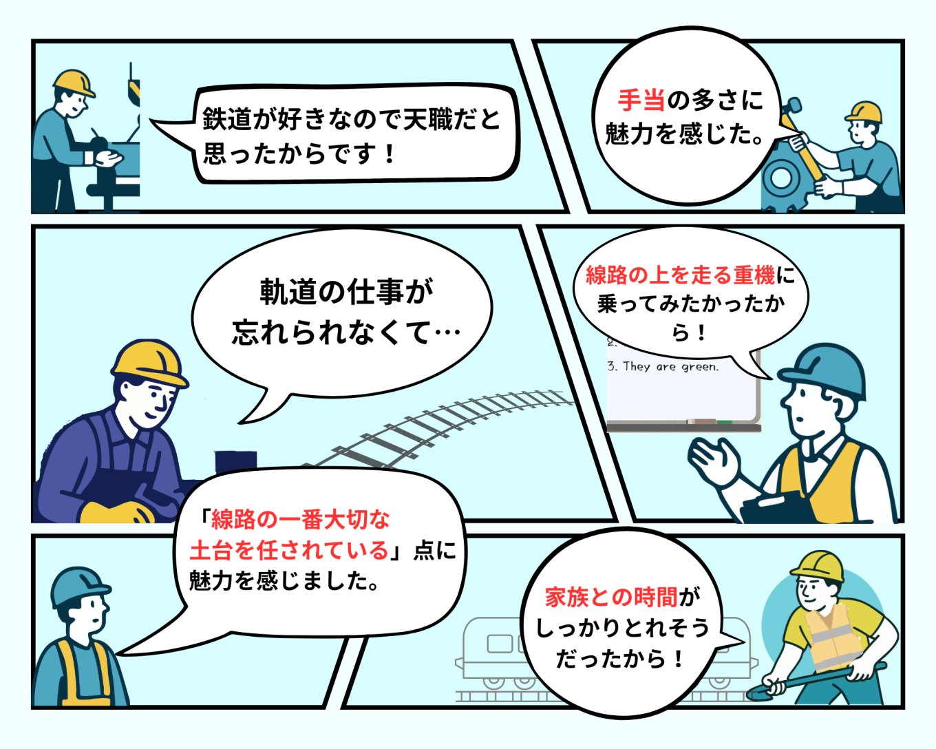 今回は第一鉄道社員の皆さんが入社を決めた理由についてまとめてみました!