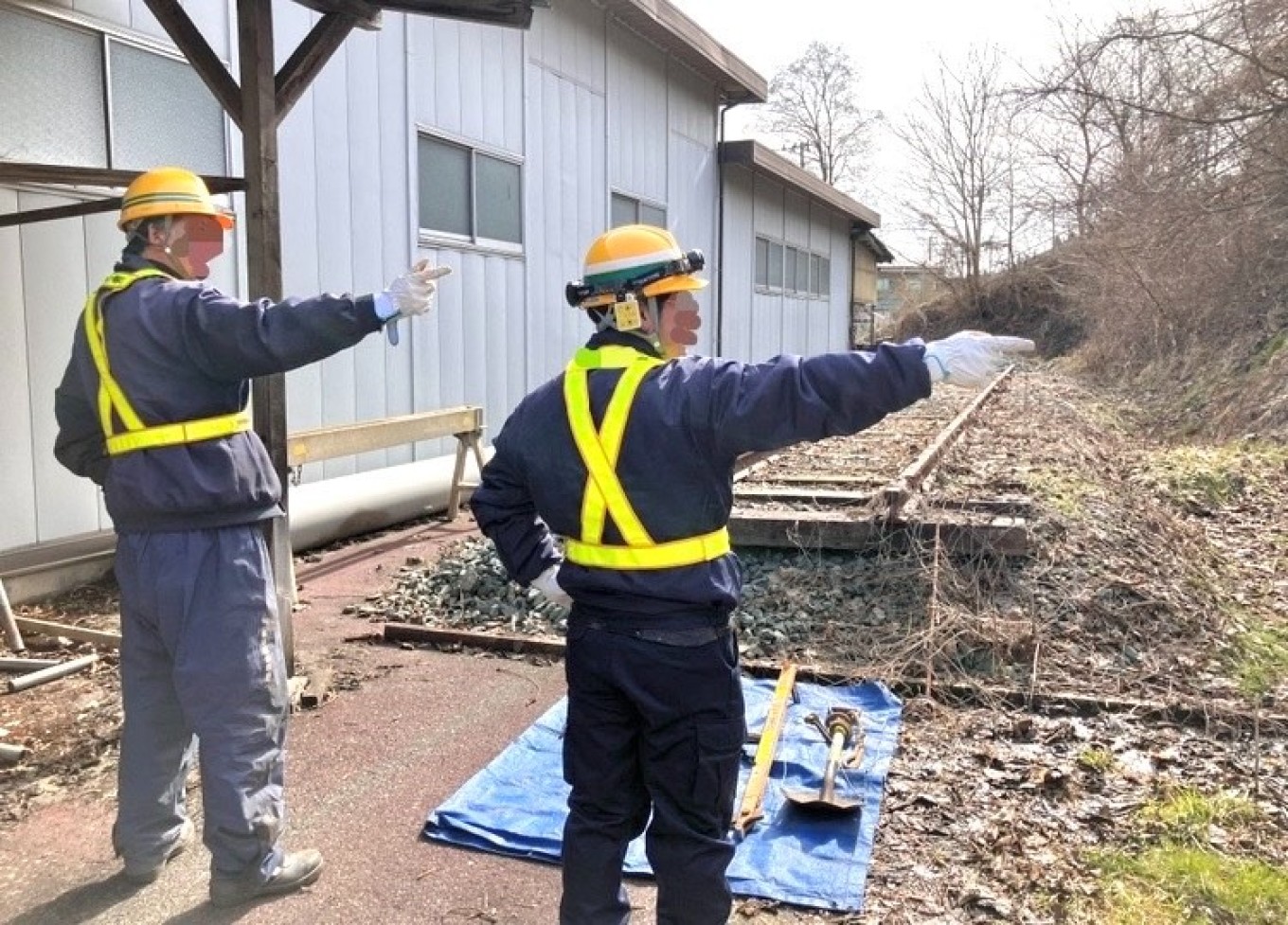 線路に立ち入る際は、必ず 「右ヨシ・左ヨシ・前ヨシ・立入ヨシ」 の確認を行い、周囲の安全を確認します。 この動作を確実に実施しなければ、線路内に立ち入ることは出来ません。